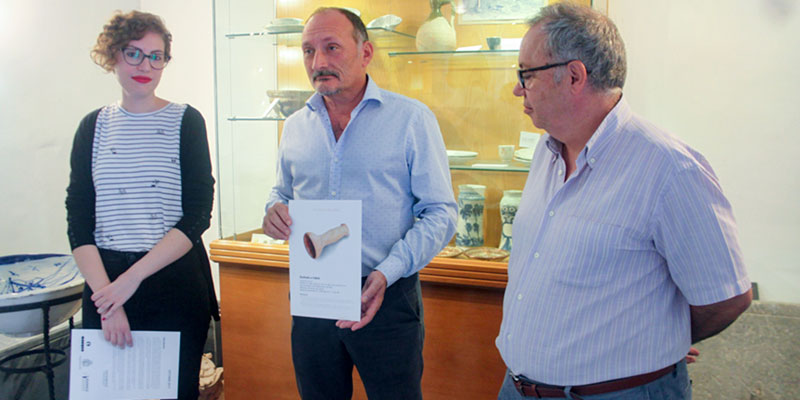 El concejal de Patrimonio Histórico, Rafael Almagro, junto con el arqueólogo municipal, Emilio Diz, y Leticia Pertegal, miembro de la Asociación de Amigos del Museo Arqueológico de Orihuela (ADAMACO), ha presentado esta mañana en el Museo Arqueológico Comarcal de San Juan de Dios la Pieza del Mes correspondiente al periodo de octubre.