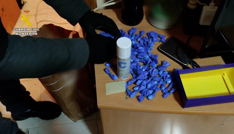 Durante el registro de la frutería, la Guardia Civil localizó droga oculta por todo el local, encontrando repartidas numerosas dosis de cocaína y marihuana por toda clase de recovecos en la frutería, tal como la caja registradora e incluso en una caja de dulces que se encontraban expuesta a la venta.