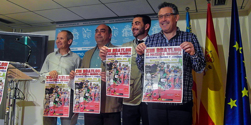 El concejal de Deportes, Dámaso Aparicio, y el edil de Pedanías, presentaron este jueves la tercera edición del Duatlón Escolar y la décimo tercera edición del duatlón absoluto “Memorial Carmen y Joaquín”, que se celebrará este sábado en la pedanía oriolana de La Matanza. Los ediles estuvieron acompañados por Paco Belmonte, presidente del Club Tragamillas, y por el vicepresidente del club, José Caselles.
