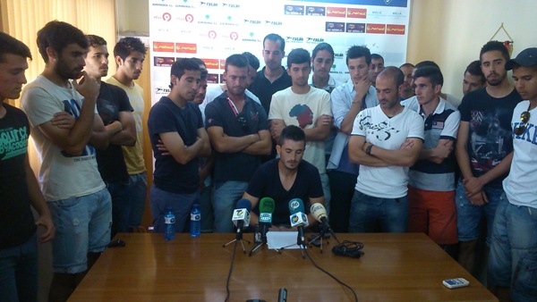 La totalidad de la plantilla del equipo amarillo, con su capitán Fleki a la cabeza, compareció en rueda de prensa para apoyar a la junta gestora en su lucha con el ente municipal.