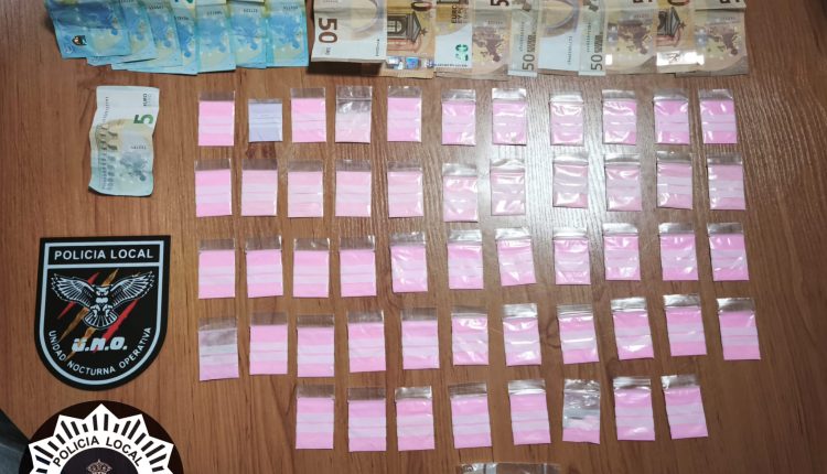 Durante el cacheo de seguridad y el posterior registro del vehículo, los agentes localizaron varias bolsas con sustancias estupefacientes, entre ellas una sustancia pulverulenta de color rosado y una sustancia cristalina, distribuidas en dosis individuales. Asimismo, se intervinieron diversas cantidades de dinero en efectivo en billetes de distinto valor.