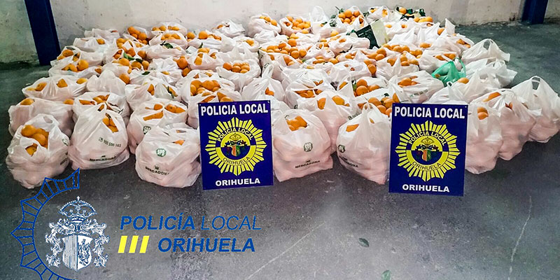 Desde la Policía Local de Orihuela aseguran que «sin la rápida intervención de los agentes, la cantidad de fruta sustraída hubiera sido mucho mayor».
