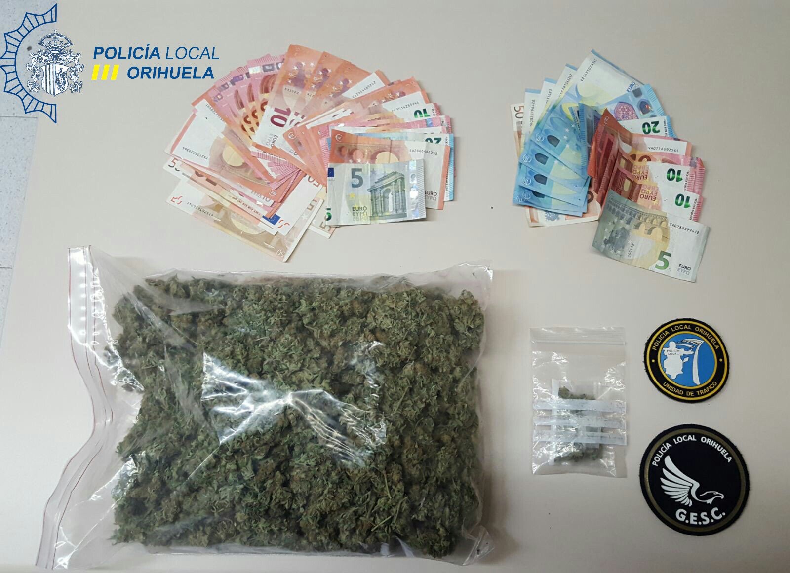 En el interior de un segundo vehículo inspeccionado fueron encontradas dos bolsas de marihuana que superaban los trescientos gramos así como una importante cantidad de dinero en metálico, por lo que los agentes procedieron a la detención de los tres individuos y a la inmovilización del vehículo.