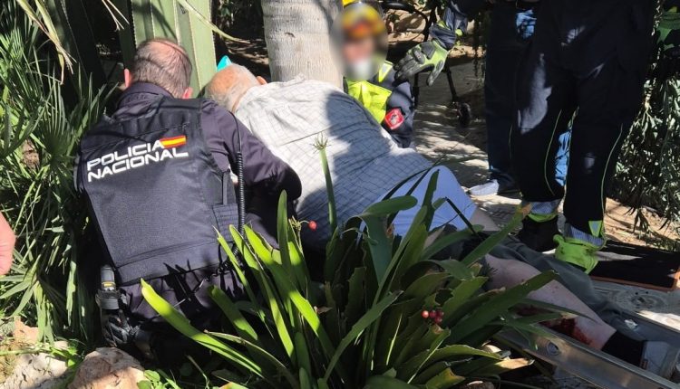 Agentes de la Policía Nacional socorrieron en Orihuela a un varón de 82 años evitando que se desangrara, tras precipitarse desde un árbol que estaba podando en su parcela y sufrir una fractura abierta en la tibia de su pierna izquierda.