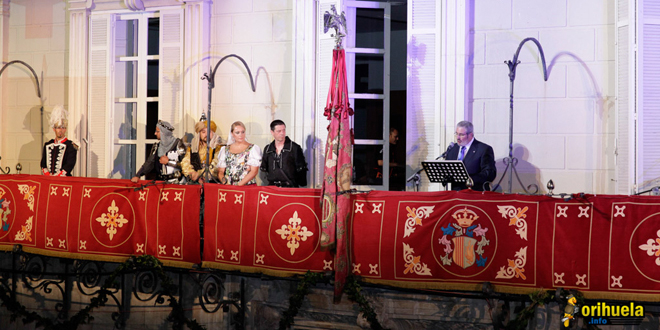 Puntualmente como todos los años, a las 12 de la noche se procedió a sacar la Gloriosa Enseña del Oriol al balcón del ayuntamiento.