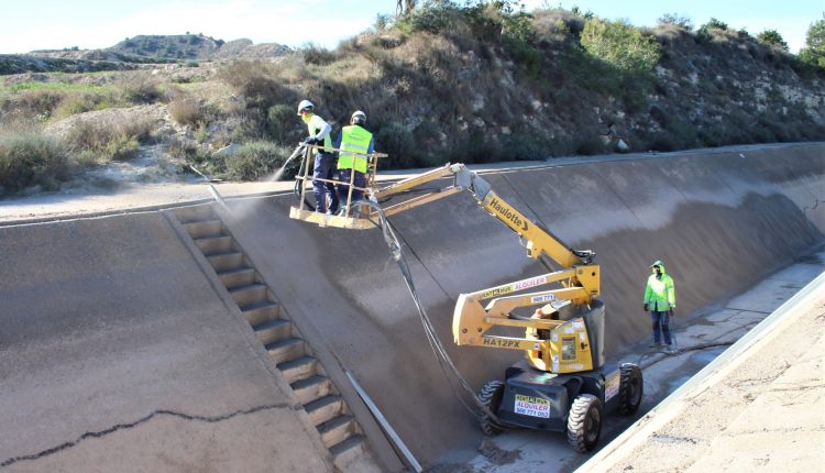 La Confederación Hidrográfica del Segura (CHS) acomete labores de conservación, mantenimiento, reparación y mejora de las infraestructuras que forman parte de los canales del Postrasvase Tajo-Segura.