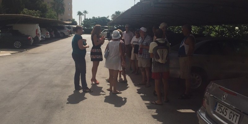 La coordinadora de Servicios de Orihuela Costa, Sofía Álvarez, y la concejal de Limpieza Viaria y Residuos Sólidos Urbanos, Noelia Grao, mantuvieron este jueves un encuentro con vecinos de Campoamor, que reclamaban la retirada del techado de las zonas de aparcamiento público, así como el mantenimiento de las aceras de las calles colindantes a la urbanización oriolana.