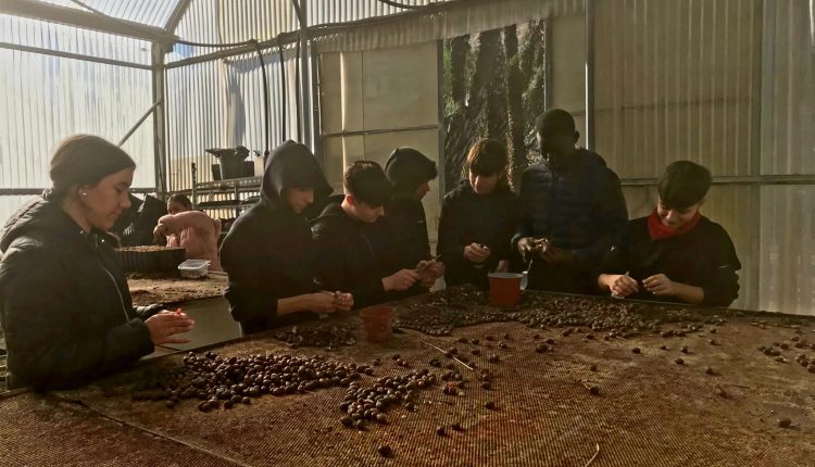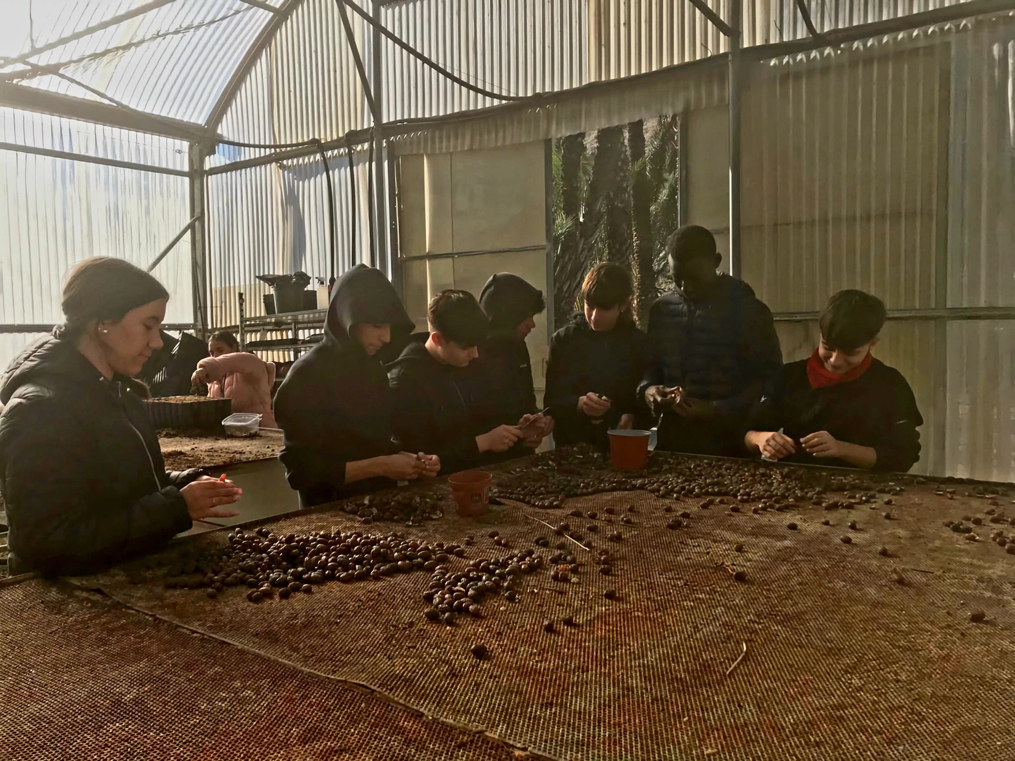 Los alumnos de primer curso de Formación Profesional Básica en Actividades Agropecuarias del IES El Palmeral están colaborando esta semana en la extracción de huesos de dátiles en el invernadero del Palmeral de Orihuela. Esta actividad tiene como finalidad secar las semillas para, a partir del próximo mes de marzo, iniciar su germinación y contribuir así al aumento de palmeras en la zona.