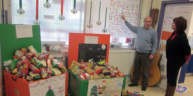 Los alumnos del colegio público Villar Palasí han recogido una tonelada de alimentos no perecederos que serán entregados a Cruz Roja dentro de una campaña que han organizado a modo de juego para los niños bajo el título ‘El baúl navideño’.