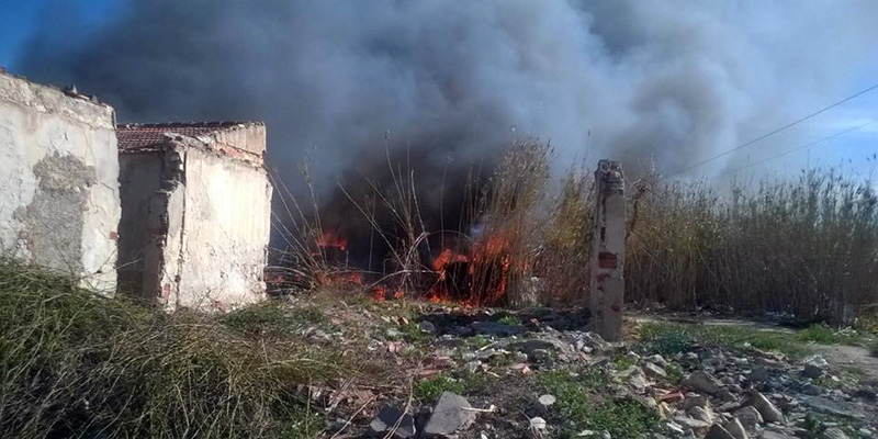 Tras comprobar que se trataba de un incendio en un cañaveral, la Policía Local de Rafal ha avisado a los servicios de emergencias y a la Policía Local de Orihuela, personándose instantes después.