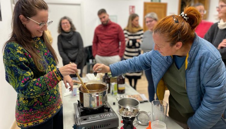 3.- Taller de Fitocosméticos naturales a base de plantas autóctonas y cultivadas: en el que se ha aprendido a elaborar colonias, bálsamo labial, cremas naturales, todo ello a través de nuestras plantas o la apicultura.
