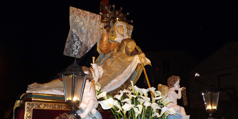 Esta noche se ha llevado a cabo el traslado de las Imágenes de Nuestra Señora de las Angustias y el Santísimo Cristo de los Agobiados desde su ermita, frente al IES Tháder, hasta la Iglesia Parroquial de las Santas Justa y Rufina desde donde saldrán en procesión el próximo viernes.