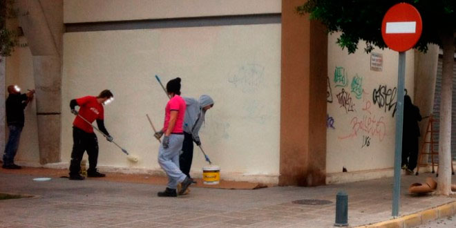 Nueve jóvenes identificados como autores de varias pintadas participan en un programa para limpiarlas