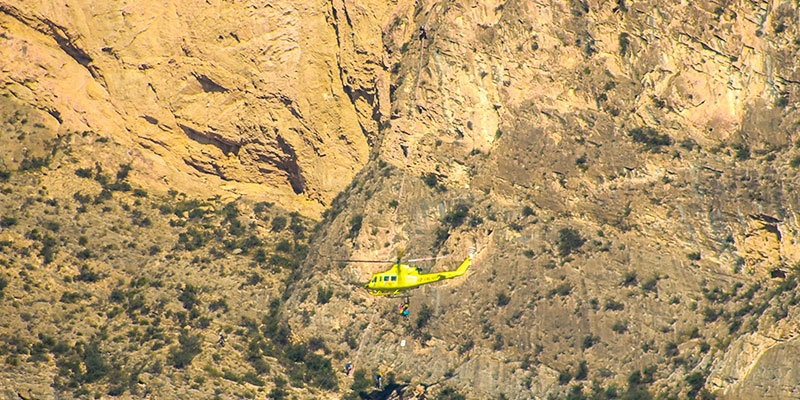 En la imagen de cabecera de la noticia se puede ver el momento en el que el herido es subido al helicóptero de rescate con la ayuda de los bomberos. Con este nuevo rescate ya son tres los que se han tenido que realizar en el último mes tanto en Orihuela como en las sierras de los alrededores.