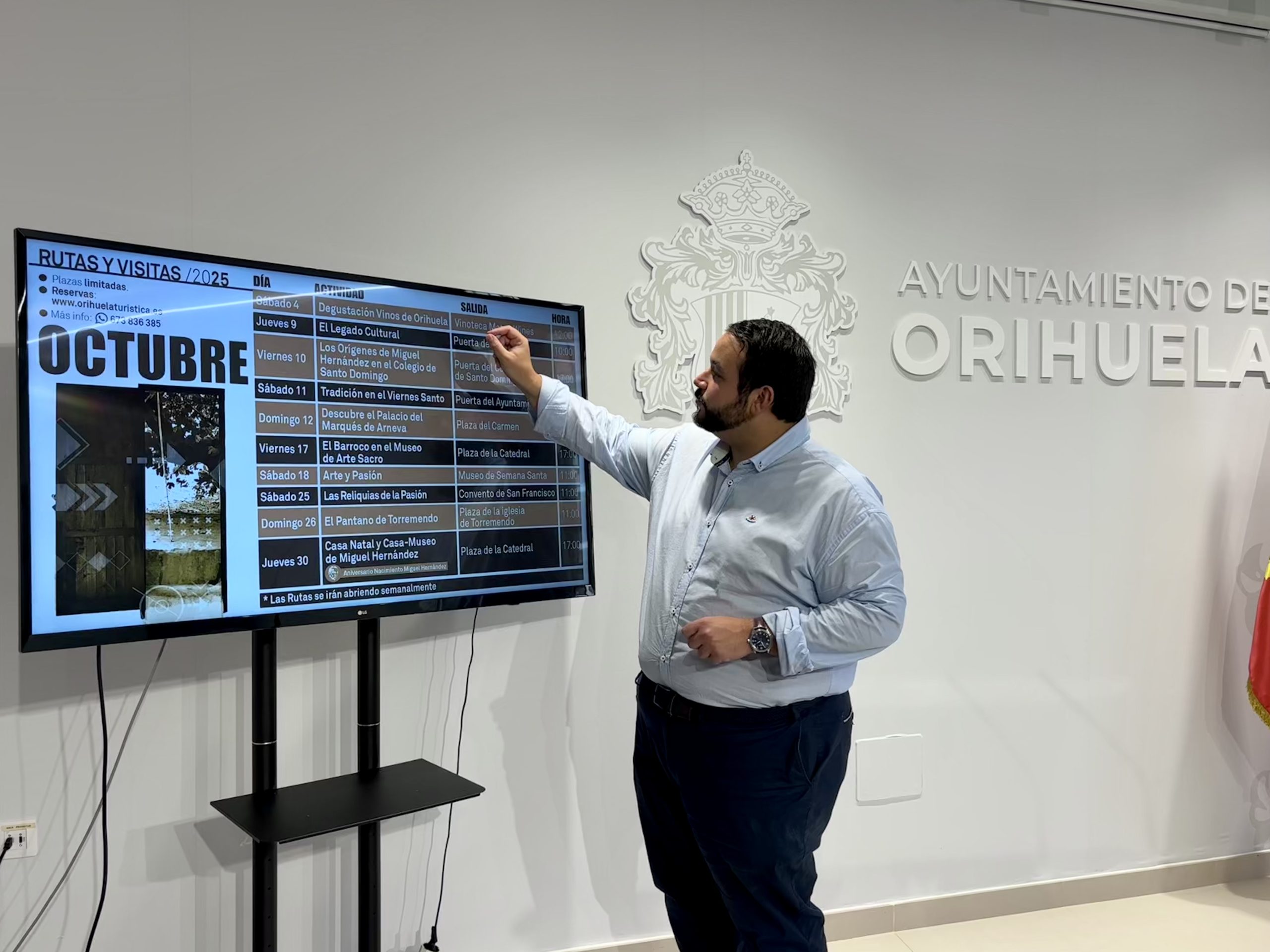 La Semana Santa, otro de los grandes referentes culturales y turísticos de Orihuela, también contará con protagonismo gracias a las rutas organizadas los días 11, 18 y 25 de octubre en colaboración con la Junta Mayor de Cofradías, Hermandades y Mayordomías. Estas visitas se enmarcan dentro de los as de la Red Europea de Celebraciones de Semana Santa y Pascua, de la que Orihuela forma parte y que se celebra durante este mes de octubre.
