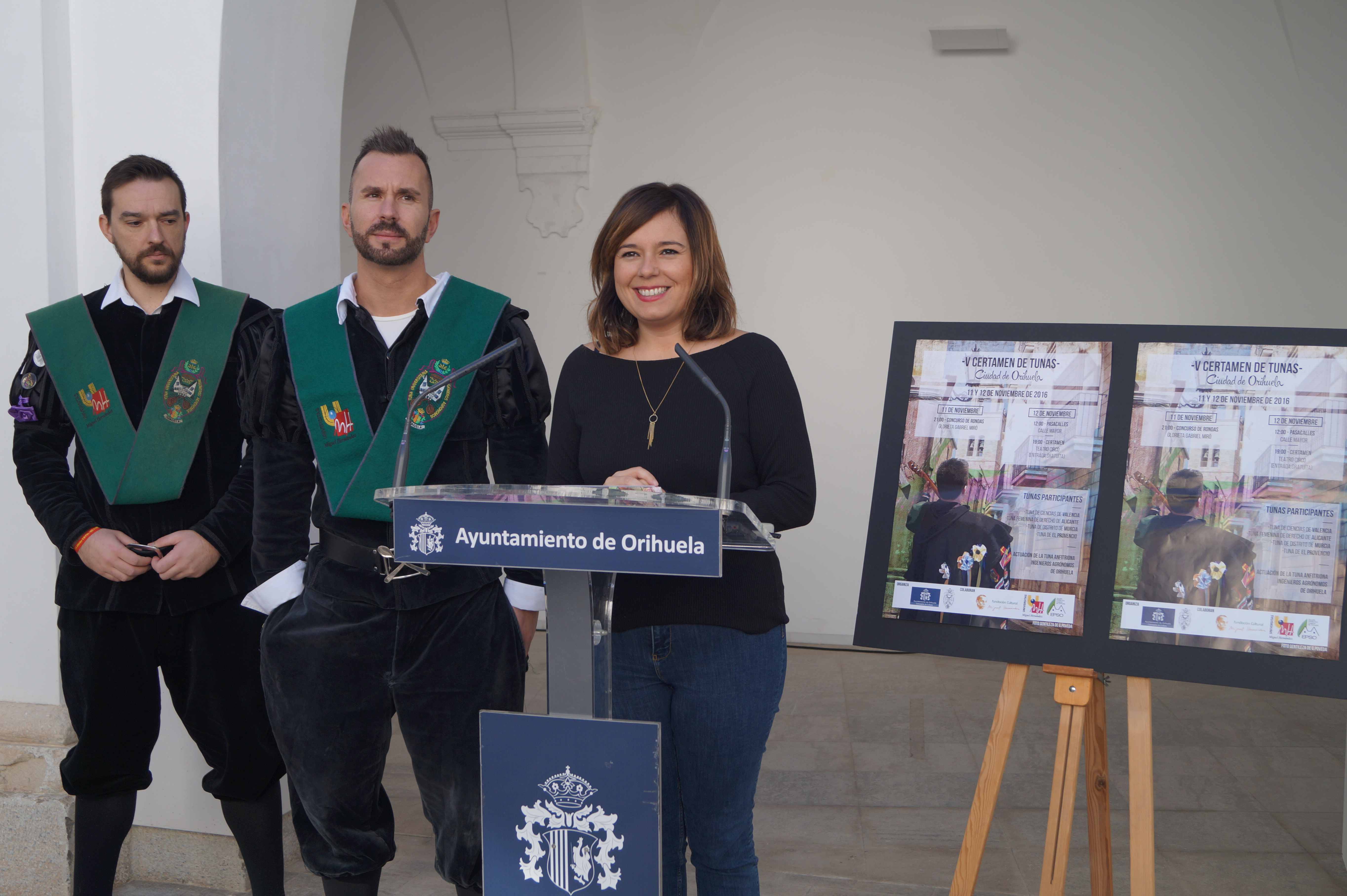 La concejal colaboradora en el área de Cultura, Mar Ezcurra, presentó este miércoles el V Certamen de Tunas “Ciudad de Orihuela”, que tendrá lugar este fin de semana en el casco del municipio. Así durante el viernes 11 y el sábado 12 de noviembre, “Orihuela recibirá a las mejores tunas del territorio nacional, entre las que se encuentran la de Ciencias de Valencia, la Femenina de Derecho de Alicante y la del Distrito de Murcia y la de El Provencio”, avanzó la edil.
