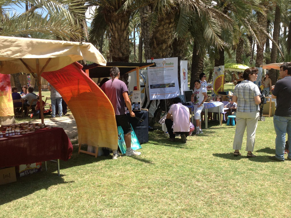 El Palmeral de Orihuela acogió ayer las actividades organizadas por la Concejalía de Medio Ambiente con motivo del Día Mundial del Medio Ambiente. La conmemoración consistió en la celebración de la I Feria Alternativa Ecológica y Artesanal en la que se dieron cita comerciantes de toda la provincia. Quesos, verdura y fruta, miel, dibujos, ropa… Los puestos ofertaron distintos productos artesanales y/o ecológicos, al mismo tiempo que se desarrollaban los talleres de elaboración de magdalenas, Tai Chi, danza y se proyectaba el documental “Hijos del Agua” en el Cinesféric.