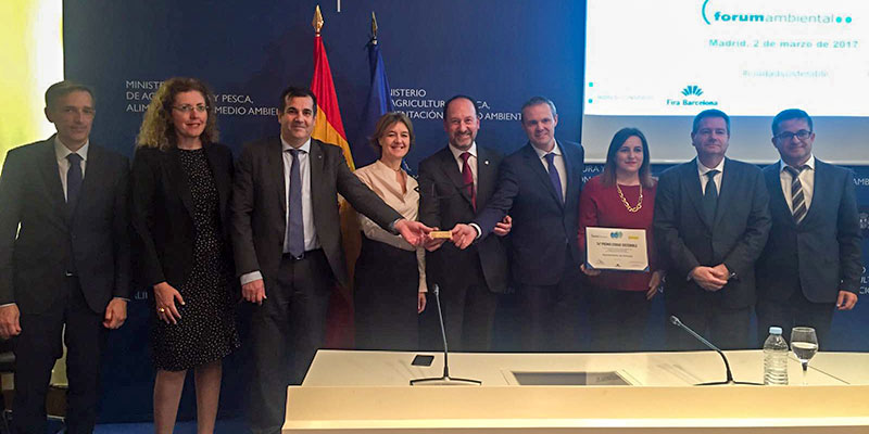 El alcalde de Orihuela, Emilio Bascuñana, recogió ayer el premio que recibió Orihuela como Ciudad Sostenible en la categoría de Gestión de Ciclo del Agua, otorgado por la Fundación Fórum Ambiental, en un acto que tuvo lugar en el Ministerio de Agricultura, Pesca, Alimentación y Medio Ambiente, y que fue entregado por la propia ministra Isabel García Tejerina.