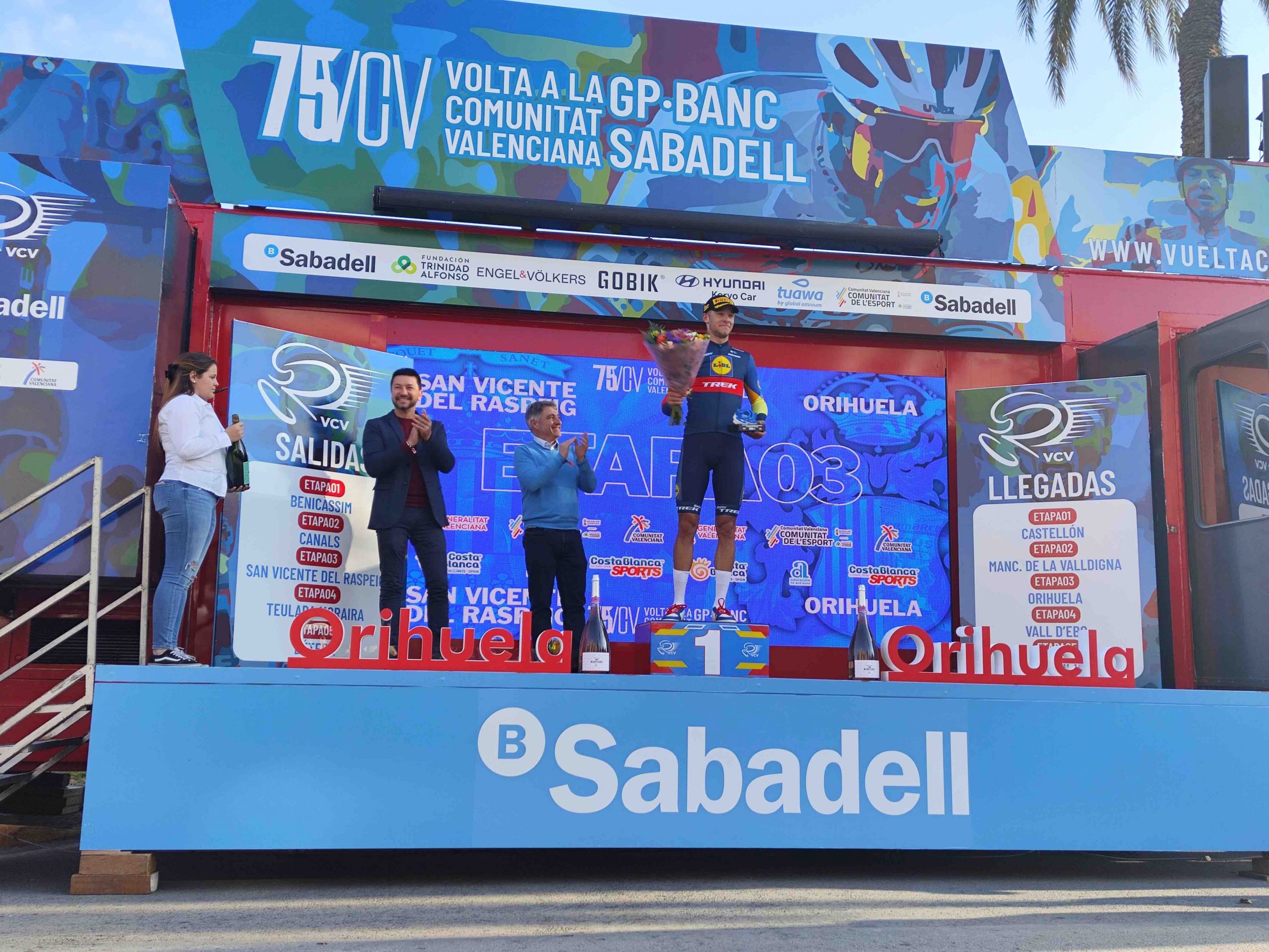 La llegada de los ciclistas ha tenido lugar a las 16.05h dando así por finalizada la tercera etapa de esta Vuelta Ciclista a la Comunidad Valencia Gran Premio Banco Sabadell que ha consistido en un recorrido de 161km (sprint) en los que en su recta final ha recorrido diferentes puntos del municipio oriolano como La Murada, El Escorratel, San Bartolomé, Hurchillo y Arneva.