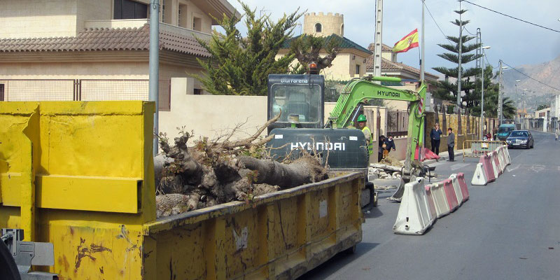 El trabajo que se está realizando consiste en la retirada de 16 jacarandas que se han trasplantado en el parque situado frente a la urbanización El Laurel de la misma pedanía, la demolición del pavimento de terrazo de la calle, la colocación del nuevo bordillo y la ampliación del nuevo acerado hasta 1,50 metros que incluye la colocación de un tubo de 90 milímetros de diámetro para el alumbrado.