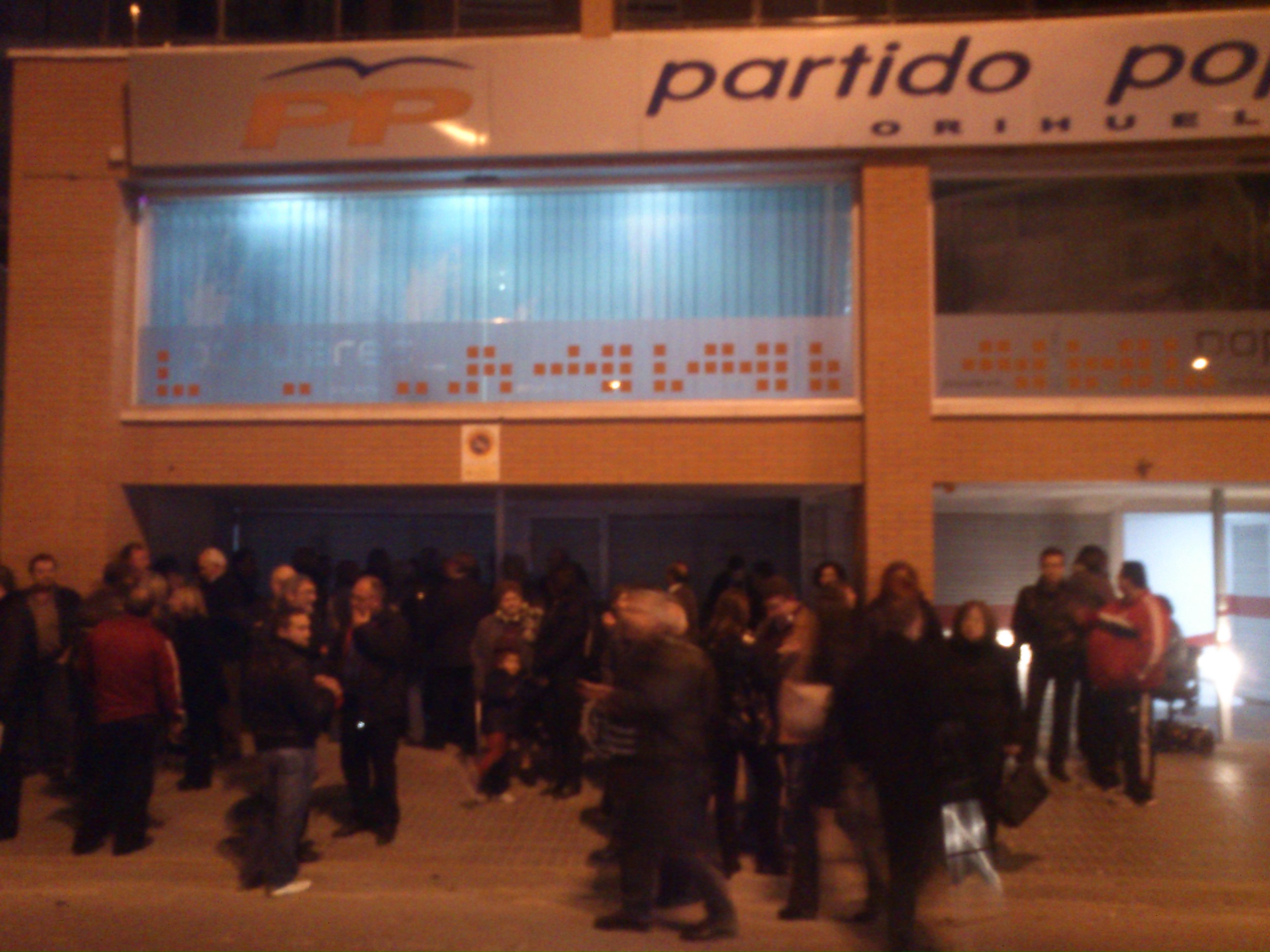 Solamente hubo de tiempo desde las 18:00 a las 20:00 horas pero las colas de las mesas eran inmensas, la gente llegaba en masa, aunque esta vez sólo llegaron un par de autobuses de la costa oriolana. La aglomeración también se palpaba en la calle, el tráfico era intenso. A las ocho justas se cerraron las puertas y muchas personas se quedaron sin poder participar, lo que provocó el descontento ya que algunos habían pedido permiso en sus trabajos para poder votar.