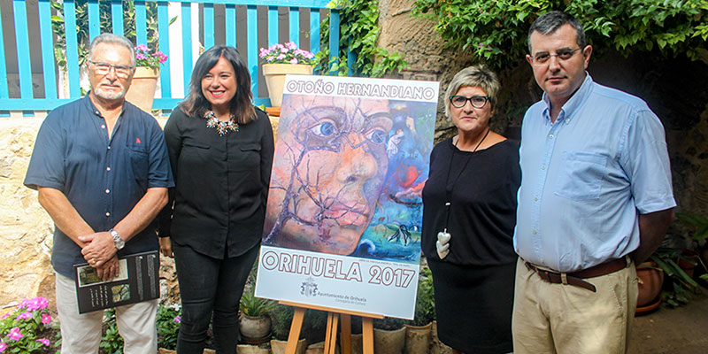 A esta presentación también han asistido representantes de las asociaciones que han colaborado en la organización de las mismas: Aitor Larrabide, director de la Fundación Miguel Hernández; Agustín García, presidente de la Asociación Cultural Orihuela 2m10, y Fabiola Andreu, la artista cuya obra pictórica ilustra el cartel de estas actividades.