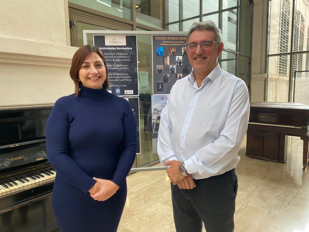 María García, concejala de Educación, junto con Juan Manuel Zaragoza, director del Conservatorio Profesional de Música de Orihuela ha presentado las actividades organizadas de noviembre y diciembre, para conmemorar el 40 aniversario del centro. Así, mañana martes 22 de noviembre, a las 19 horas, en el auditorio de La Lonja, tendrá lugar la inauguración de una exposición fotográfica con imágenes que rinden homenaje a todas las personas que han formado parte de esta institución a lo largo de estos cuarenta años, además de celebrar un concierto a cargo de antiguos alumnos del centro. Asimismo, el jueves 24, a las 20 horas, actuará el saxofonista Raúl Cuartero y el martes 29, a las 20 horas, concierto de grupo de percusión “One more time” and friends, todos ellos en el auditorio de La Lonja.