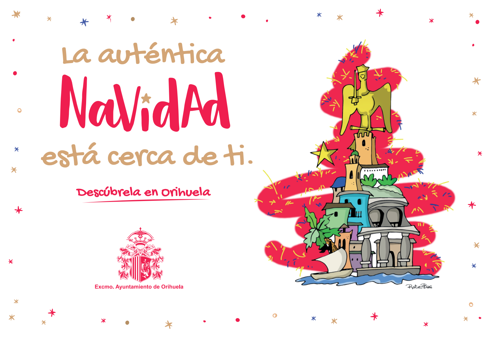 En el acto de inicio de la Navidad en Orihuela se ha presentado la imagen de la campaña de esta Navidad, que ha sido obra del ilustrador oriolano Rate Bas. En esta ilustración navideña, nos hace un recorrido visual del extenso territorio de Orihuela, presidido por un emblema tan importante para nuestra ciudad como es el Oriol, nuestro castillo, monumentos, pedanías y cómo no, nuestra orgullosa y preciosa costa. Todo junto hace similitud con el árbol navideño.