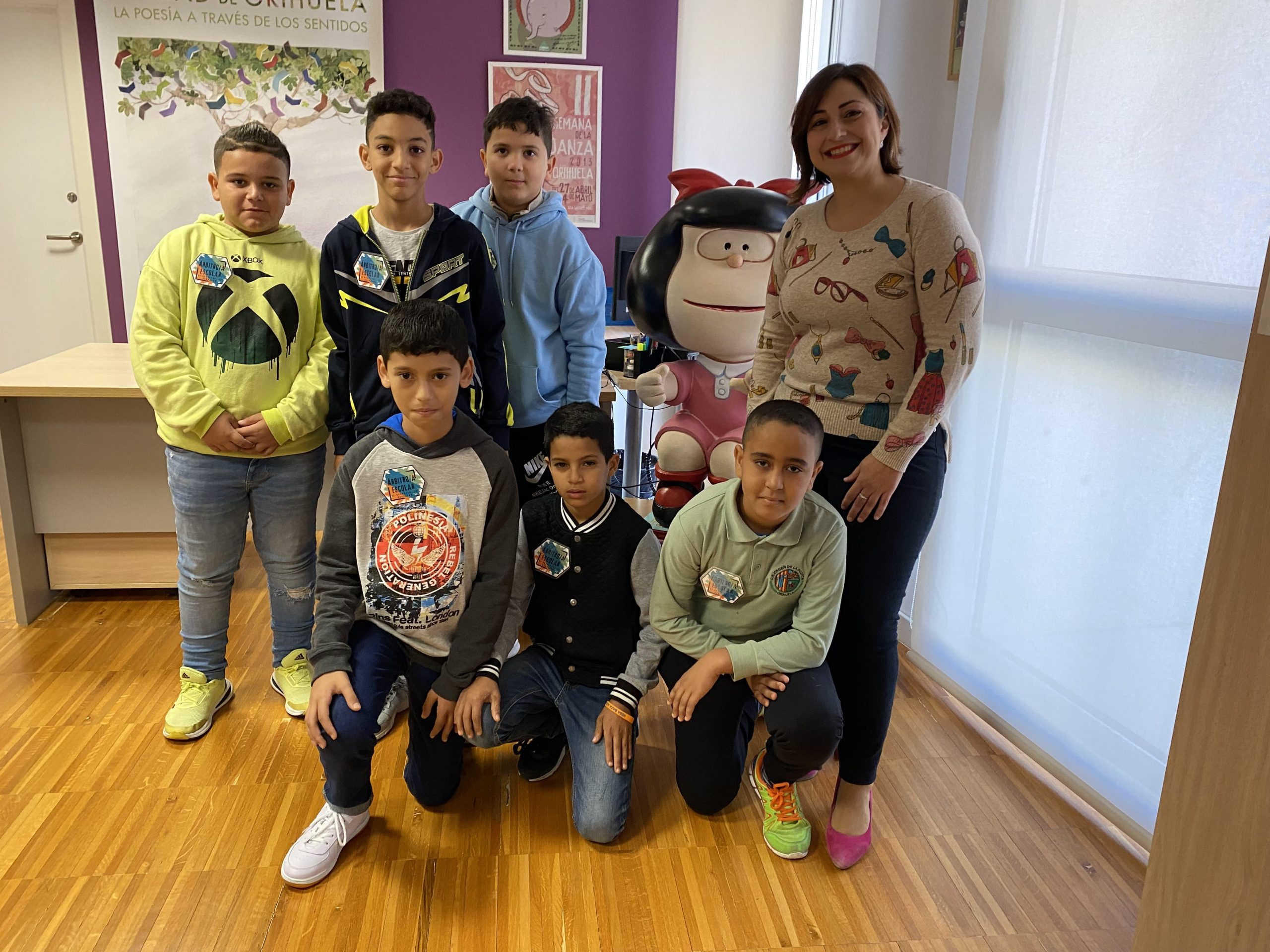 María García, concejala de Educación, ha recibido esta mañana en las dependencias de la concejalía a los menores de 5º y 6º de primaria del CEIP Virgen de la Puerta participantes del proyecto de metodología Aprendizaje y Servicio ‘Si respetas, te respetan’ impulsado por la asociación Vega Baja Acoge. Este proyecto, tiene como objetivo fomentar el respeto hacia la diversidad en los colegios; para ello, el grupo de menores ha creado una figura llamada “Árbitro/a Escolar” que favorece la mediación cuando existe un conflicto en el centro.