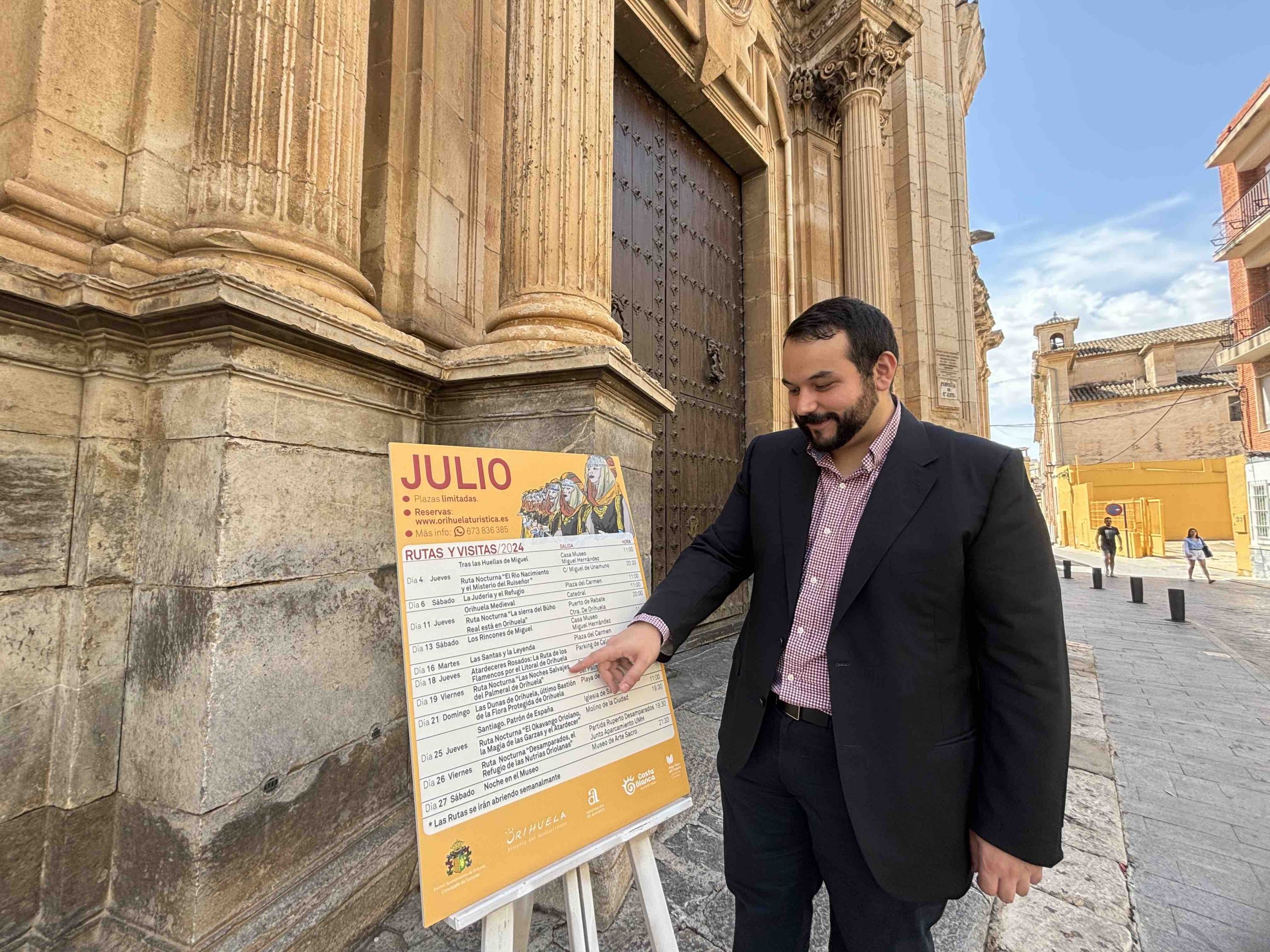 Entre las rutas culturales destaca, «Tras las Huellas de Miguel» y «Los Rincones de Miguel», el jueves 4 de julio y el sábado 13 de julio respectivamente, dedicadas a la figura del poeta oriolano Miguel Hernández. También se llevarán a cabo recorridos temáticos en la semana de las fiestas de la Reconquista de Moros y Cristianos, como “Las Santas y la Leyenda” el martes 16 de julio, y “Santiago, Patrón de España” el jueves 25 de julio, que ofrecerán a los visitantes una inmersión en la rica historia de Orihuela.