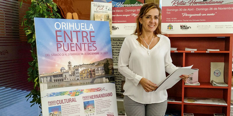 La concejal de Turismo, Sofía Álvarez, ha presentado esta mañana las nuevas rutas turísticas organizadas por la Concejalía para el mes de diciembre, denominadas «Orihuela Entrepuentes» y se llevarán a cabo del sábado 2 al domingo 10 de diciembre por las calles del municipio.