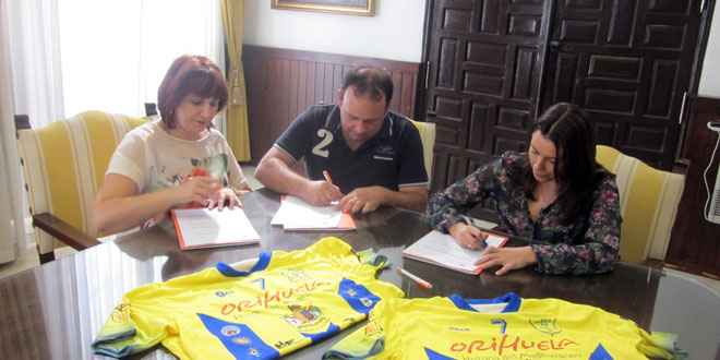 Las Concejales de Turismo y Juventud, Rosa Martínez y Carolina Gracia, respectivamente, han firmado un convenio de colaboración con Rául Sáez Barberá en representación del C.F.S. Orihuela por el que el Ayuntamiento aportará 16.000 euros a la entidad deportiva que milita en Segunda División B.