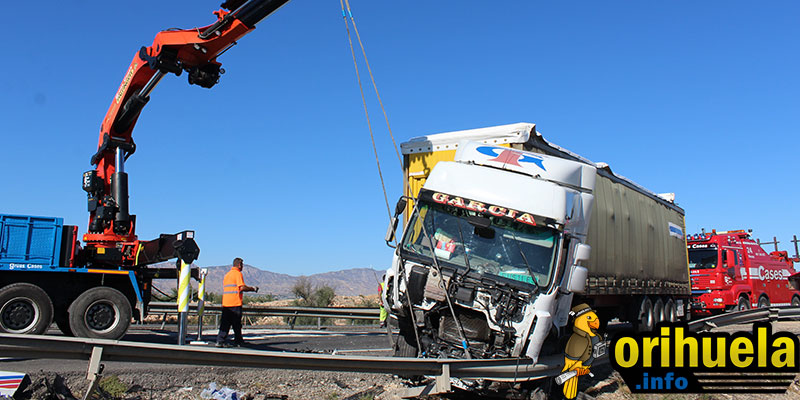 Un camión que circulaba en dirección a Murcia, debido al reventón de una rueda, ha saltado la mediana de la autovía A-7 este mediodía provocando un accidente frontal contra un turismo que circulaba en dirección hacia Alicante y un múltiple atasco así como el corte de los accesos a la autovía hasta la altura de Crevillente. En el accidente ha fallecido el conductor del turismo.