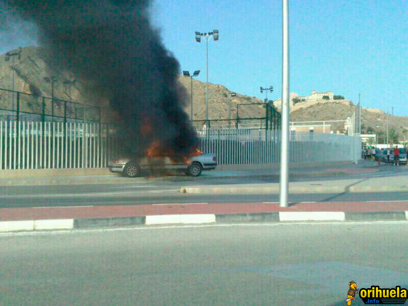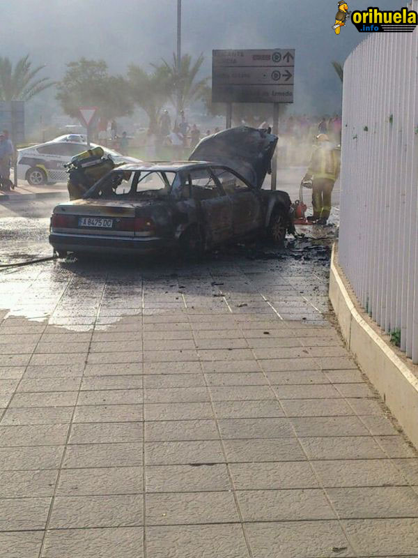 No es pequeño el susto que se han llevado una oriolana esta tarde sobre las 19:30h cuando tras recoger a su hija de unos cursillos en el Palacio del Agua su coche ha comenzado a arder para posteriormente acabar explotando.