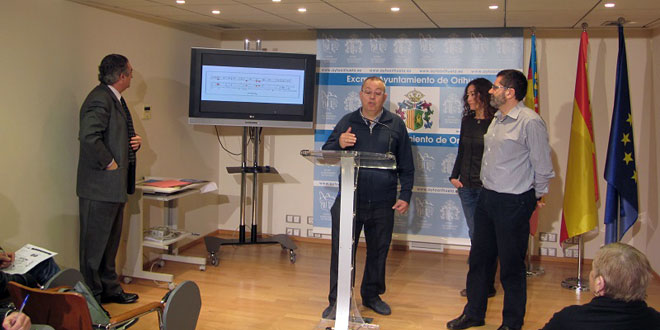El arqueólogo municipal, Emilio Diz; la arqueóloga Silvia Yus, el Concejal de Patrimonio, Manuel Gallud, y la familia de José Ruiz Mateo han presentado el hallazgo singular de un Ídolo datado en la Edad de Bronce que Ruiz Mateo encontró en la ladera del Monte de San Miguel y que ya está expuesto en el Museo Arqueológico comarcal.
