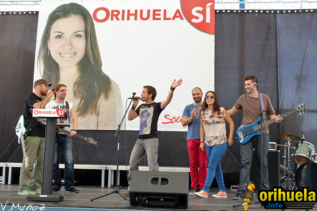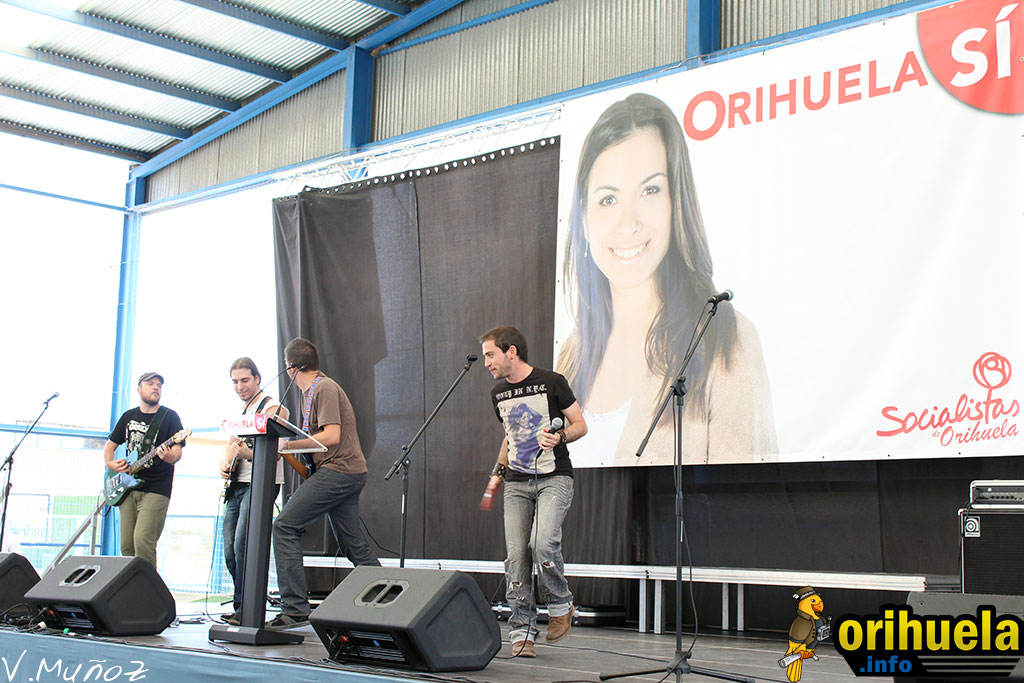 No ha faltado la actuación en directo del grupo de jóvenes oriolanos ‘5 Sentidos’, quienes han interpretado la canción de la campaña titulada ‘Dime sí’. Un tema que cuenta con un videoclip disponible en youtube y en todas las redes sociales y producido por la muradeña María José Mestre, quien también ha subido al escenario para recibir las muestras de agradecimiento de la gran familia socialista.