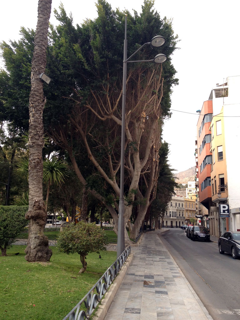 Sin compasión alguna por estos árboles, que son seres vivos, se podan a lo bruto, cercenando a veces más del 50% de su copa, solo de un lado, por la mitad, totalmente desequilibrado como cualquiera puede comprobar si se acerca a verlos. No existe ninguna razón para efectuar este desastre porque tanto si fuera por seguridad, como por salud del ejemplar, como por molestias a los ciudadanos (hipótesis más consistente), se les podría haber aplicado una poda selectiva. No se comprende que se agarre la máquina y se cometa semejante destrozo, así, como si estuvieran recortando el seto del vecino. «Vaya escardaores», murmuraba un anciano mientras «admiraba» la obra.