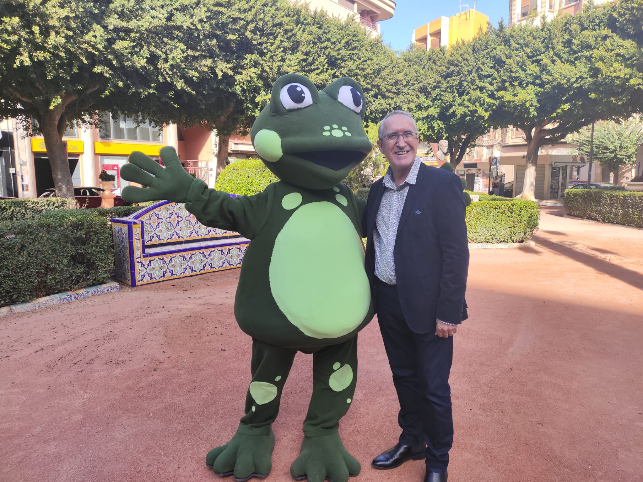 Pina ha desvelado que el diseño de esta nueva mascota está ambientado en la tradicional fuente de las ranas que se encuentra en la Plaza Nueva, uno de los puntos neurálgicos del comercio de Orihuela.