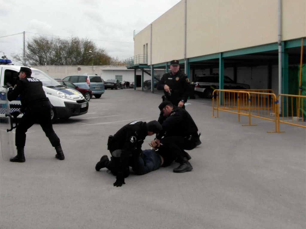 Una veintena de agentes de las fuerzas y cuerpos de seguridad han participado en un curso de operativa policial que se ha desarrollado en la Jefatura de Policía Local, si bien también han participado agentes del Cuerpo Nacional de Policía y guardias civiles. En este sentido, durante la práctica de hoy, que ha servido para clausurar el curso que se ha impartido durante la semana, también ha estado presentes el comisario de Seguridad Ciudadana de Murcia, miembros de la Unidad de Intervención Canina de Alicante y de una empresa que adiestra perros para prestar servicio, entre otros sitios, en el estadio Santiago Bernabéu. Así, se ha hecho una demostración de las técnicas aprendidas durante el curso relativas a la detención de una personas con problemas mentales que ha agredido a un familiar en su vivienda. En este sentido, los agentes han conocido técnicas para reducir a una persona enajenada sin causarle heridas, así como para entrar a una vivienda en la que hay una víctima de violencia de género con su agresor. Del mismo modo, se ha hecho una demostración de las actuaciones de los perros en estos casos. Así, los canes han mostrado su habilidad a la hora de reducir a una persona armada y de proteger al agente con el que trabajan.