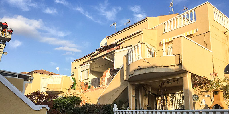 Esta mañana a primera hora se ha producido el derrumbe de una vivienda en Orihuela Costa, concretamente en la calle Limón de Campoamor, tras ceder el terreno sobre la que estaba construida.